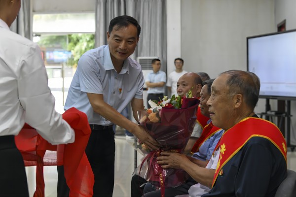 仪式上,区党工委书记、管委会主任秦传玉依次为在场9名“光荣在党50年”纪念章获得者颁发纪念章并献上鲜花,代表双凤经开区党工委向所有荣获纪念章的老党员表示热烈的祝贺和崇高的敬意,对老同志们为党和国家、为双凤经开区发展所作的贡献表示衷心的感谢。