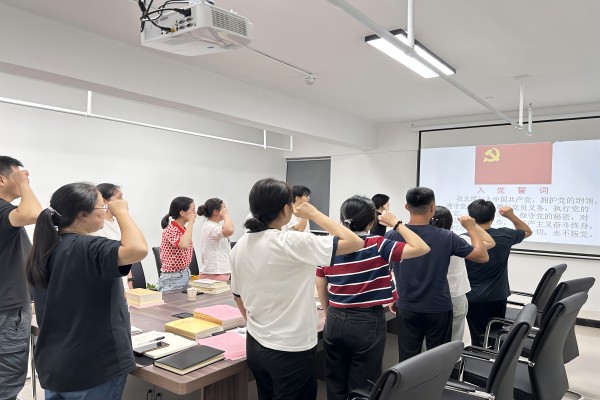 重温一次入党誓词。为激励党员、干部不忘初心、牢记使命,矢志拼搏奋斗。座谈交流会上,筹备组副组长朱松国带领全体党员在党旗下庄严宣誓,重温入党誓词,“我志愿加入中国共产党,拥护党的纲领,遵守党的章程,履行党员义务……”。宣誓声铿锵有力,充分体现了全体党员坚定不移听党话、跟党走的政治自觉、思想自觉和行动自觉。